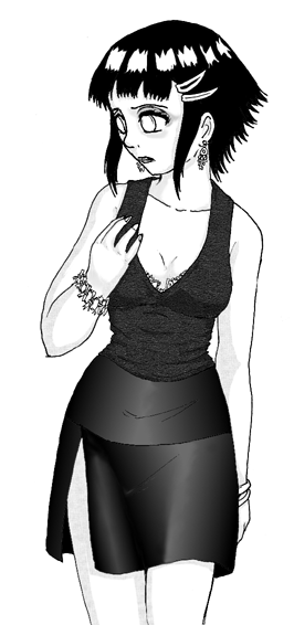 She kiss me for the last time and takes in the case where she arranges her Anbu uniform and her weapons, a large black coat, a black combination, a black mask and a headband with a leaf barred by a cut. This headband disappears under the black mask. I recognize her.