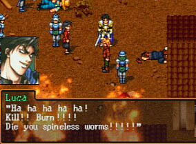 Nous avons bien tenu le premier assaut et nous pensions que Highland ne réattaquerait pas tout de suite. Grave erreur. Les troupes du general Kiba nous ont attaquée par le nord et celle du prince ont fait une attaque surprise par le sud. Les lances de feu ne marchaient plus. Et finalement, le fort est tombé, il a fallu fuir vers Muse. Dans la panique de la retraite, nous sommes revenus dans le fort chercher Pilika. | ![]() |