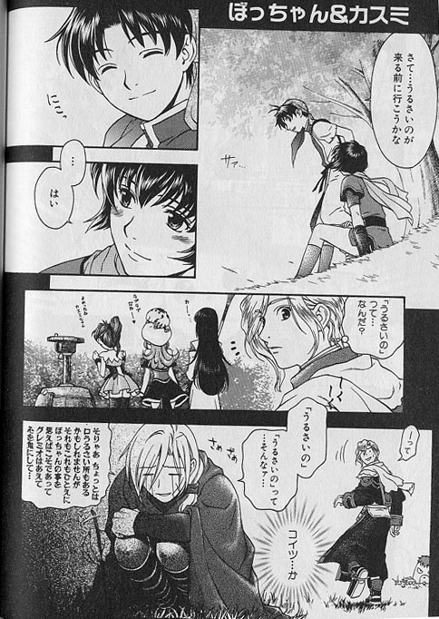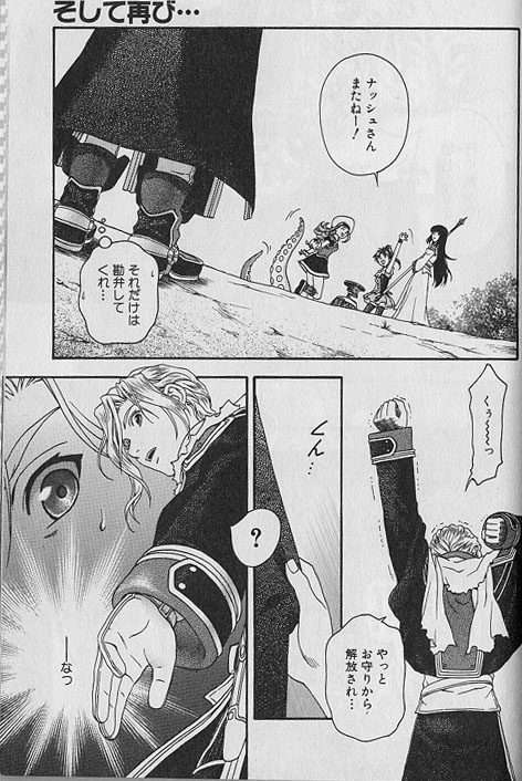 enfant, ils voient Riou, nanami et Jowy partir, et teel Dohl discuter avec